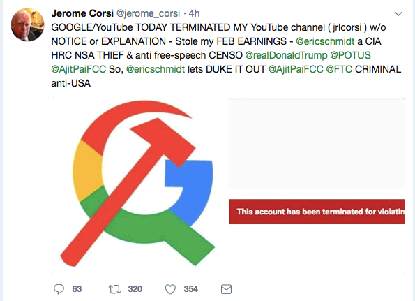 Vooral de kritische berichtgeving over de Parkland schietpartij in Florida blijkt aanleiding tot het boycotten van video’s en het sluiten van accounts. De mainstream media zit behoorlijk in z’n maag met de kritische vragen die worden gesteld. Video’s over dit onderwerp worden onterecht weggezet als “intimiderend en pestend”. De nieuwste maatregel van Youtube is, om naast video’s waarin alternatieve standpunten worden belicht, een debunking informatiekader te plaatsen met een link naar bijvoorbeeld een Wikipediapagina. Alles om de officiële en gewenste verhaallijn er doorheen te drukken.