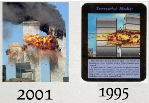 Vooraankondiging van de 9/11 aanslagen in de animatieserie The Simpsons en “Coming soon” in Johnny Bravo tekenfilm.