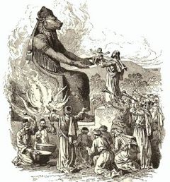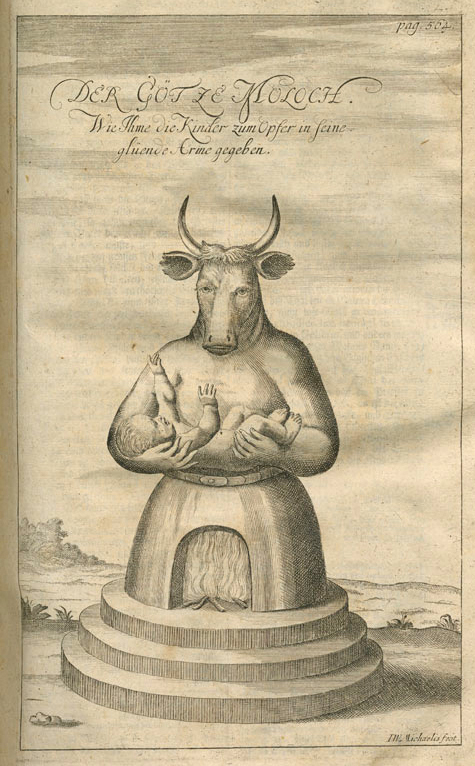 Moloch was een godheid die afgeleid was van de Egyptische god Set, aan wie mensen werden geofferd. De god Set was een homoseksuele god van het kwaad. Hij werd aanbeden tijdens ceremonies die mensenoffers, kannibalisme en homoseksuele orgieën inhielden. Ook bij dit wezen zijn de hoorns weer een karakteristiek element.