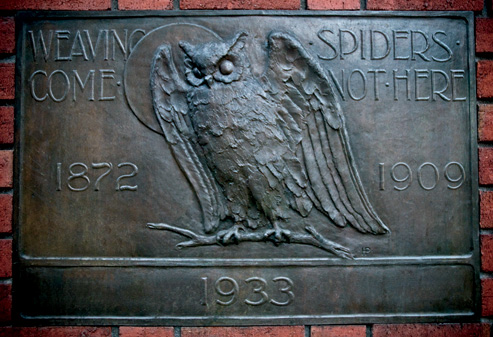 Er is ook nog het verhaal van Minerva en Arachne (spin in het Grieks). Het gaat over een weefwedstrijd tussen Minerva — ook wel bekend als de godin van de kunst, handwerken en weven — en Arachne. Die laatste werd in een spin veranderd nadat ze de wedstrijd verloren had. De spreuk “Wevende spinnen komen hier niet” die op het plakkaat staat van de Bohemian Club, kan heel goed verwijzen naar deze mythe. Het simpele feit dat de spreuk om de uil heen staat, die Minerva vertegenwoordigd, is veelzeggend en opvallend. De combinatie van deze onderdelen zijn wel heel opvallend te herleiden aan het verhaal van Arachne en kan daarom niet afgedaan worden als puur toeval. [6]