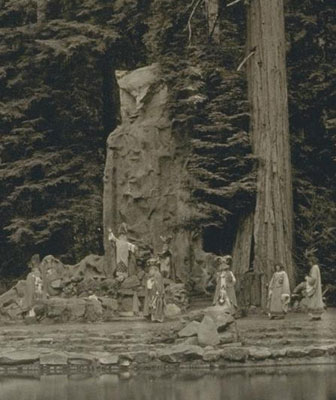 Een betonnen uil van ruim 12 meter staat aan het hoofd van het meer in de Bohemian Grove. Dit uil-altaar werd in 1929 gebouwd als een ceremoniële plek voor traditionele Bohemian rituelen en wordt jaarlijks gebruikt voor de Cremation of Care Ceremonie. Er wordt daar een mensenoffer uitgevoerd, zogenaamd met een dummy. Moloch was de Kanaänitisch godheid, aan wie mensen werden geofferd. Omdat het Egyptische woord voor uil ‘moloch’ is, wordt ook de uil om die reden als symbool bij offerrituelen gebruikt.