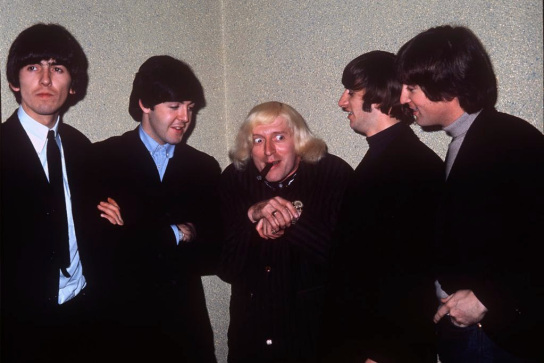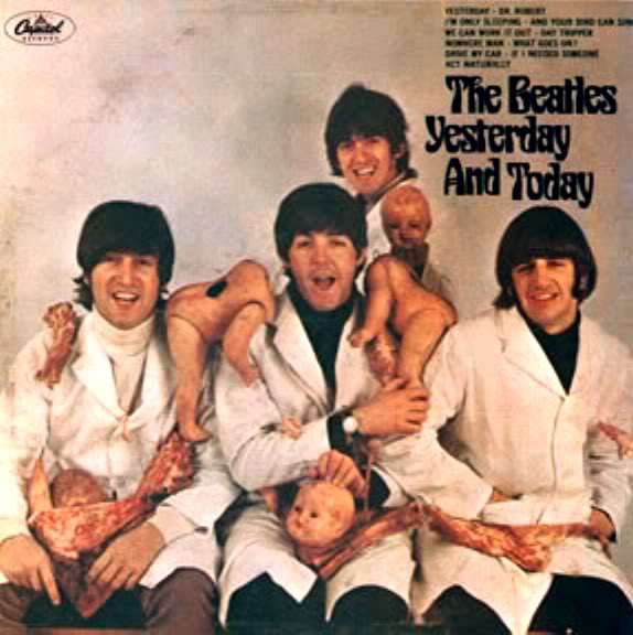 De Beatles gefotografeerd met de beruchte Satanist en pedofiel Jimmy Saville (foto 4). De originele platenhoes van Yesterday and Today, die een Satanisch offerritueel lijkt af te beelden (5). Deze controversiële foto veroorzaakte dermate veel ophef dat deze vervangen werd door een andere foto, echter niet minder controversieel. Hier lijkt James Paul in een doodskist te zitten, een aankondiging van zijn geplande dood (6).
