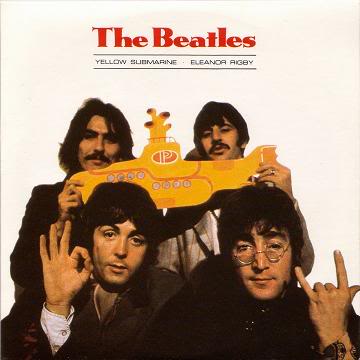 Van links naar rechts en boven naar beneden: LP-hoes van de single Eleanor Rigby van het album Yellow Submarine waarbij Paul (Faul) het 666-handgebaar maakt en John het Baphomet handgebaar (foto 1 linksboven). Paul maakt hier het alziende-oog-handgebaar en vrijmetselarij-handgebaar (foto 2 & 3). Bovenstaande handgebaren zijn tegenwoordig standaard voor artiesten die onder controle van de Illuminati staan.