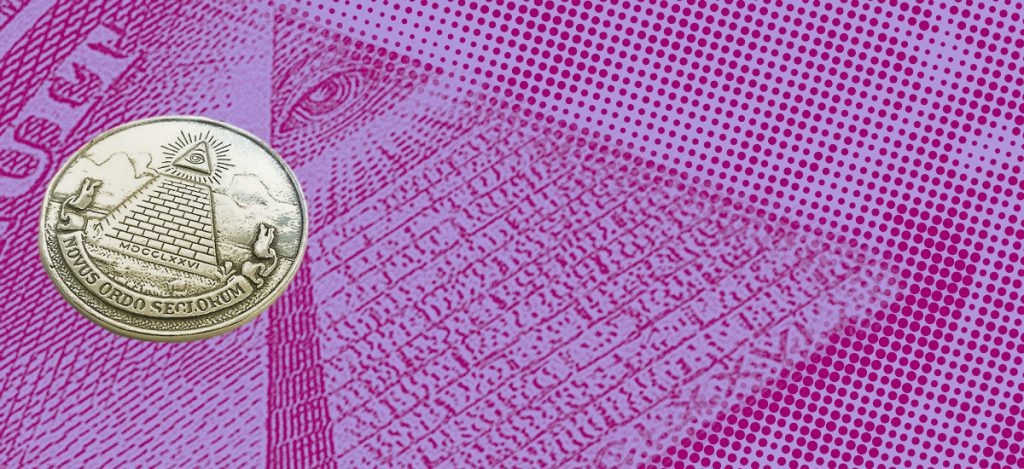 Boven de piramide met het alziende oog staat: “Annuit cœptis,” wat zoiets betekent als: “bevorder onze ondernemingen.” Daaronder: “Novus ordo seclorum,” in het Nederlands: “Nieuwe orde van de tijden.” De zin komt uit de vierde Ecloge van Vergilius:“De grote orde der eeuwen is herboren.”
