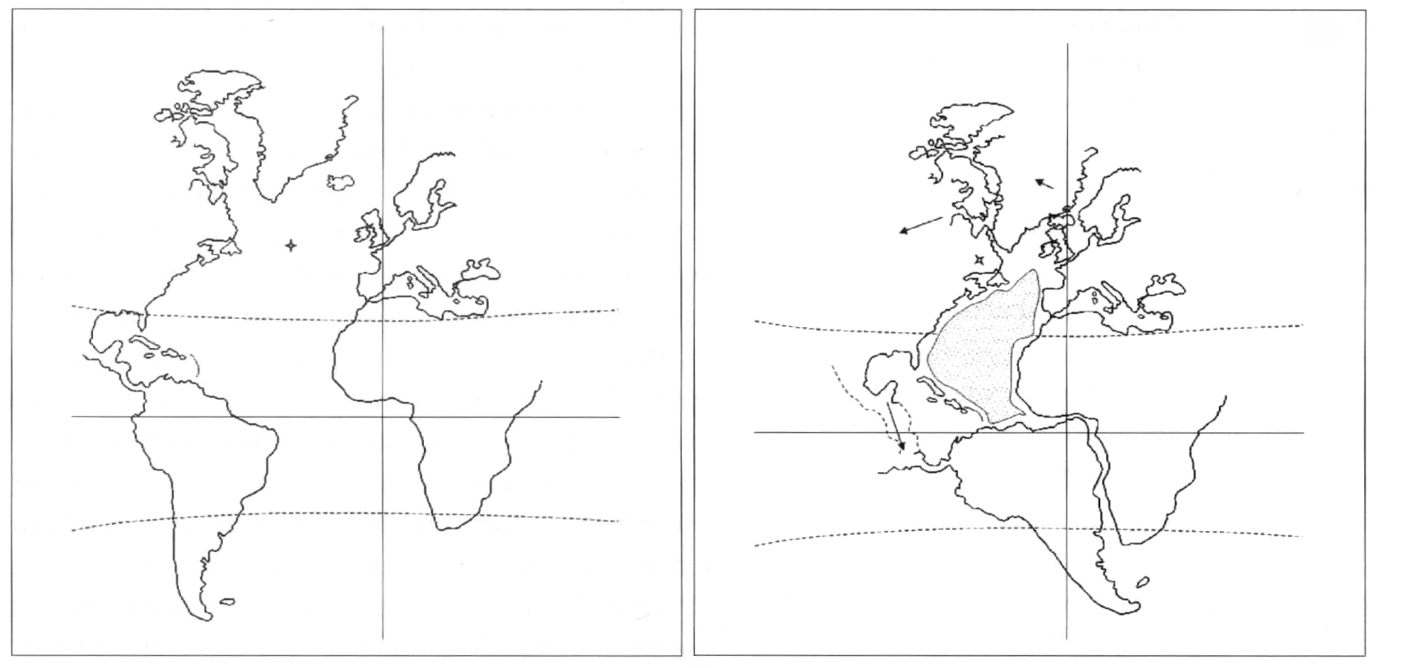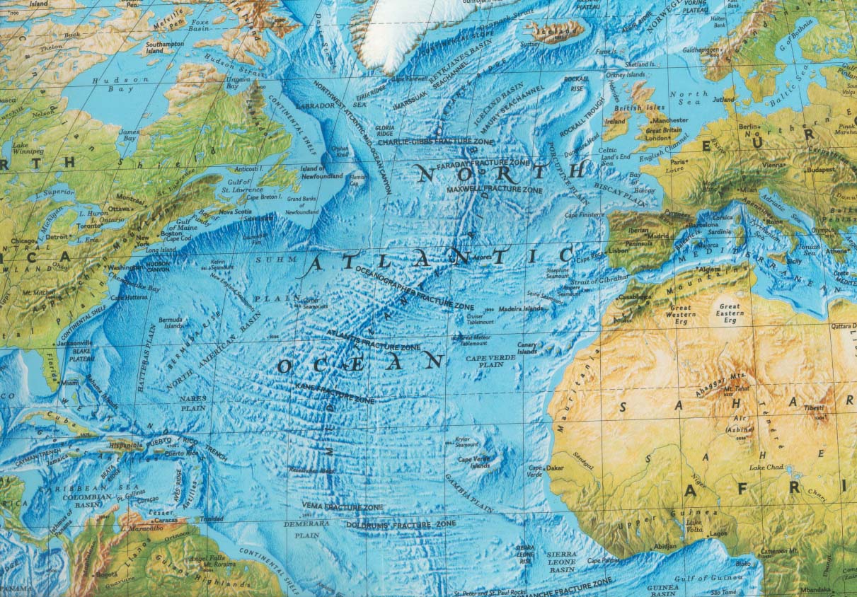 Als men de kustlijn van Canada terug schuift naar Groenland, Groenland naar Noorwegen en vervolgens Zuid-Amerika terug schuift naar Afrika, waarbij de punt van Brazilië in de hoek van Kameroen past, blijft er in het midden een loze ruimte over. Was dit lang geleden wellicht ook een landmassa die door een catastrofe naar de oceaanbodem is gezakt?