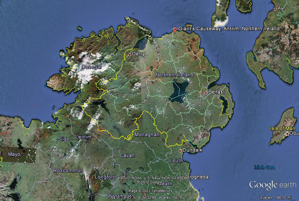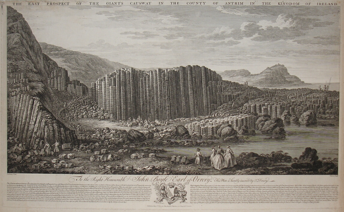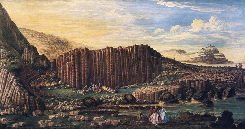 De schrijver vervolgt: “Als we onze blik echter verplaatsen naar het noord-oosten van Ierland, naar de kust van Ulster, vinden we de Giants Causeway, die uit basaltzuilen bestaat. Sommigen zijn ruim 12 meter hoog, opgeworpen door een omwenteling waarvan verondersteld word dat deze 60 miljoen jaar geleden heeft plaatsgevonden.