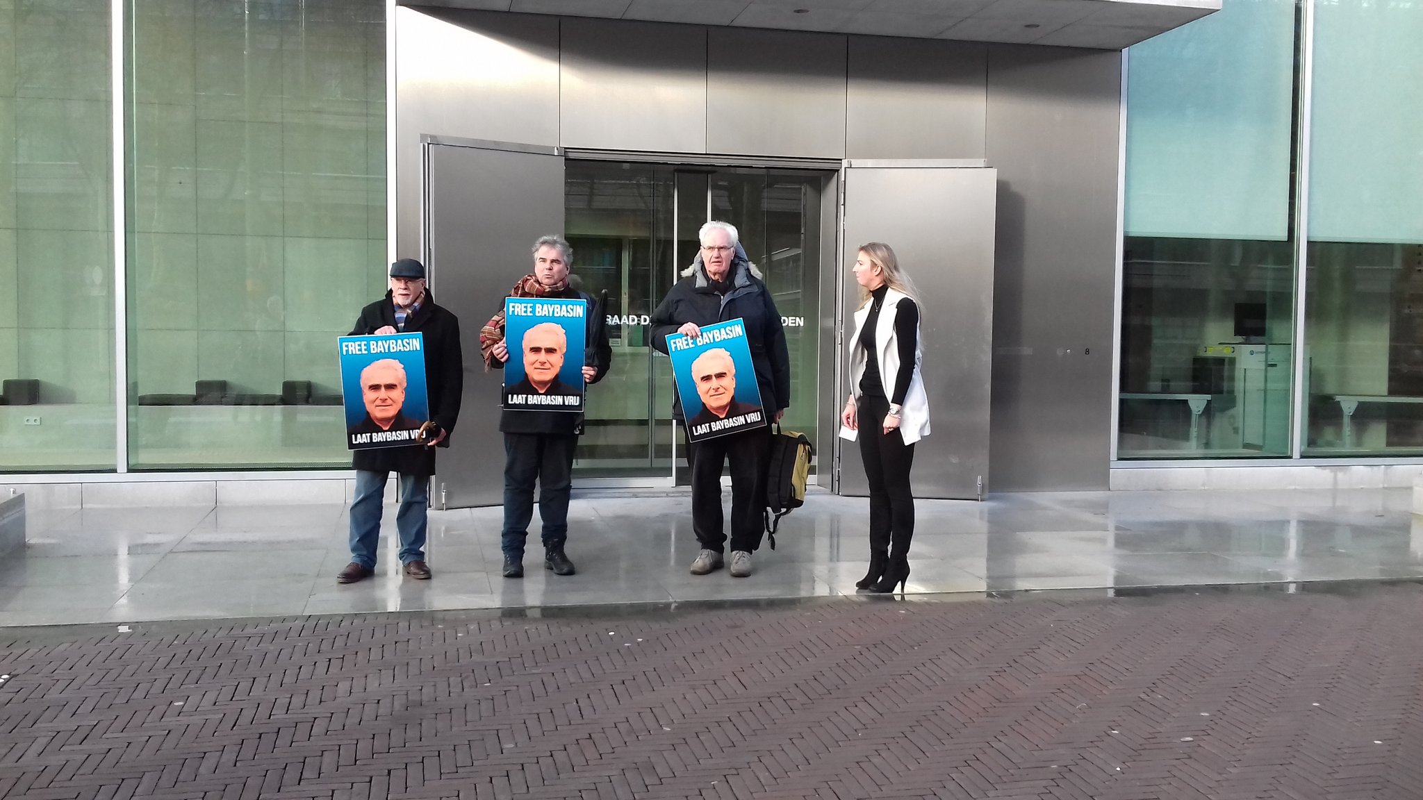 Drie mannen op leeftijd staan bij de Tweede Kamer en later die middag bij de Hoge Raad. Ze mogen niet te dicht bij het gebouw demonstreren. Ook aan de overkant worden ze weggestuurd. Als ze even later voor een paar mooie foto’s aan de overkant van de Hoge Raad, over de openbare stoep, het gebouw voorbij lopen, zien ze door de ramen rennende en druk bellende mensen, die naar het drietal wijzen. Even later steekt een beveiliger rennend de weg over, het schuim staat op zijn mond. “Jullie hebben tegen het verbod in over de stoep gelopen”, piept hij verontwaardigd. [1] Het voorval is illustratief voor de paniek die toeslaat bij Justitie als anderen beweging in de zaak Baybasin proberen te krijgen.
