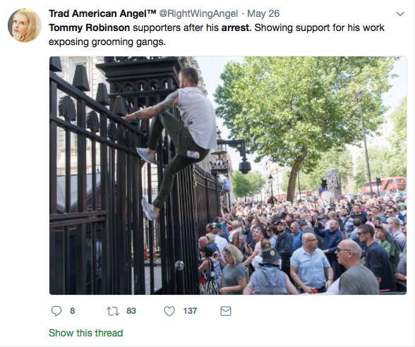 De arrestatie staat in schril contrast tot de vrijheid die de daders krijgen, die vanuit het raam van het gerechtsgebouw doodsbedreigings-gebaren maakten naar het publiek op straat, volgens getuige Caolan Robertson die bij de arrestatie van Tommy Robinson aanwezig was. Het lijkt het beeld te bevestigen dat de daders worden beschermd en critici overdreven hard worden aangepakt. Tommy Robinson is op dezelfde dag van zijn arrestatie voorgeleid aan de rechtbank. Deze heeft hem tot 13 maanden cel veroordeeld vanwege ‘minachting voor de rechtbank’.