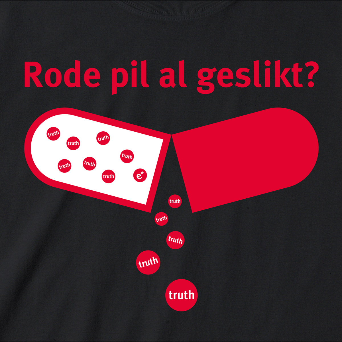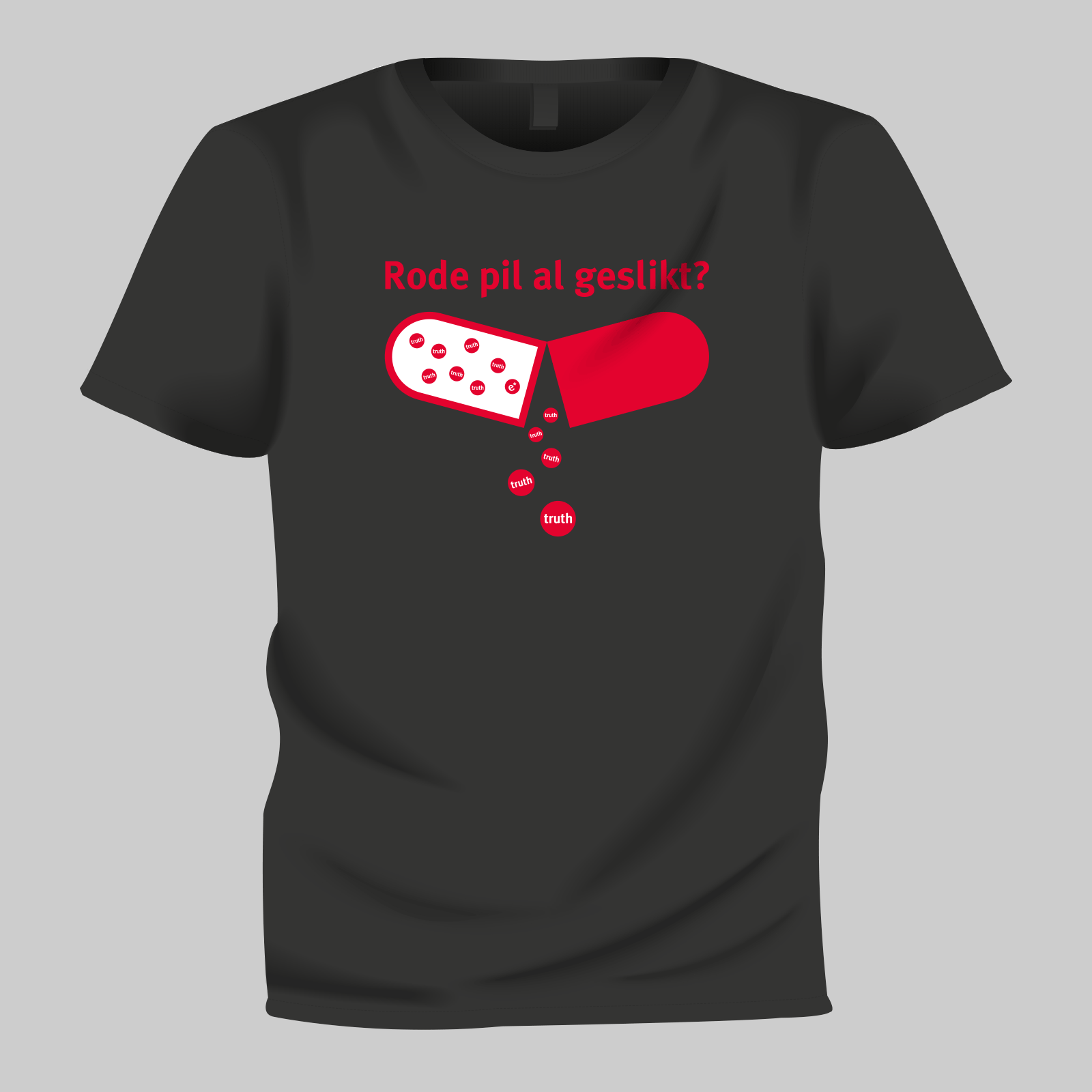 Het ‘Rode pil al geslikt?-shirt’ is gratis bij een half jaar een €7,50 ($8) Patreon lidmaatschap.