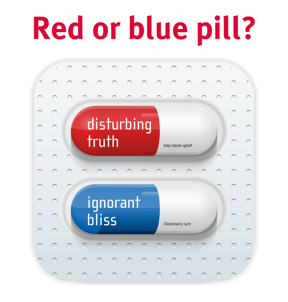 Het slikken van de rode pil is een metafoor geworden voor het slikken van de ‘bittere pil’, omdat eigenlijk iedereen grote moeite heeft met bepaalde zaken, die je te zien of te lezen krijgt als je de waarheid onder ogen durft te zien. Als je voor het eerst hoort over de Illuminati, Pedogate of chemtrails, staat je wereld op z’n kop. Maar op het moment dat je inziet hoe de wereld deze werkelijk in elkaar zit, kan je ook de regie nemen om de wereld in positieve zin te veranderen. Alleen al door het veranderde collectieve bewustzijn, kunnen we de wijze waarop de wereld gestalte krijgt, vormgeven.