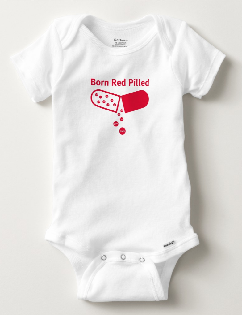 Er is geen mens zo puur als een baby. De nieuwe generatie kinderen staat open voor de waarheid, zij hoeven daarvoor ‘geen pil te slikken’. Het shirt werkt als een spiegel: “Hoe open sta jij voor de waarheid?” Jouw keuze voor deze babyproducten, betekent dat oprechtheid voor jou voorop staat.