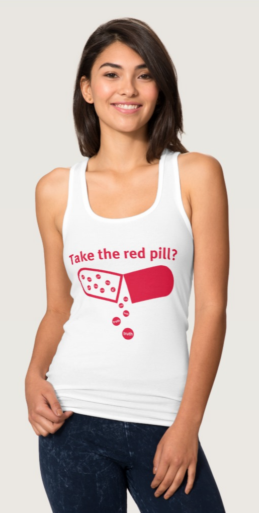 Het slikken van de rode pil is in de Engelstalige waarheidsbeweging al verworden tot een werkwoord. ‘To be red-pilled’ is een staat van zijn, of ‘to red pill someone’ is bij iemand een ontwakingsproces op gang brengen. De opdruk met ‘Rode pil al geslikt?’ is in diverse producten verkrijgbaar. Ook in het Engels: ‘Take the red pill?’