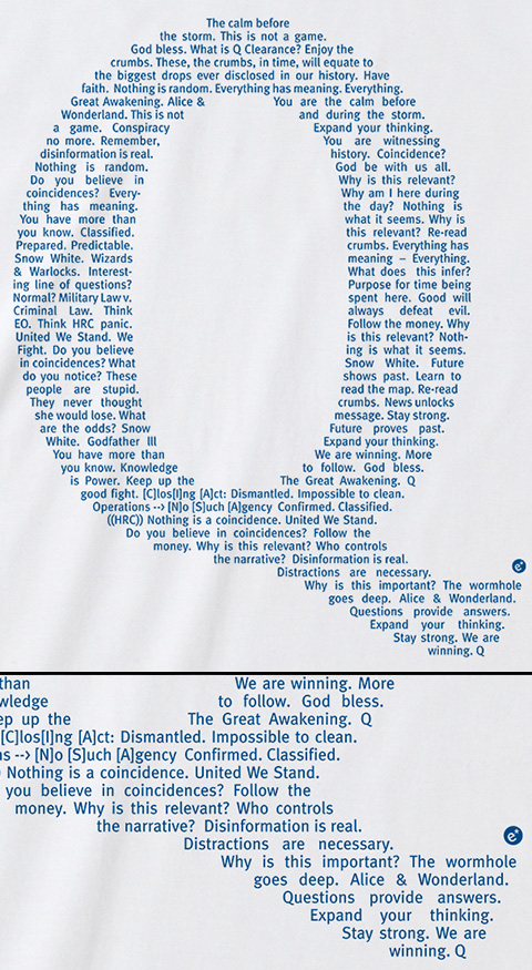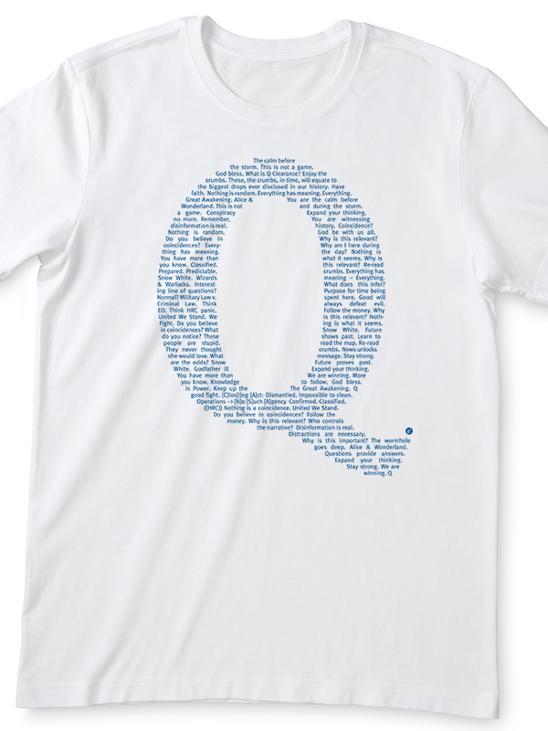De Q-shirts en andere Q-producten, speciaal ontworpen voor Ella Ster, zijn helaas uit mijn online winkel op Zazzle verwijderd. Zij staan politieke boodschappen niet toe, of producten die een bepaalde politieke groepering vertegenwoordigen. Een (gesigneerd) Q-shirt is nog wel te verkrijgen bij een lidmaatschap van Patreon. Er zijn twee varianten. Zodra ik ander verkoopkanaal heb gevonden die wél Q-producten toestaan, worden deze weer aan de Ella Ster-collectie toegevoegd.