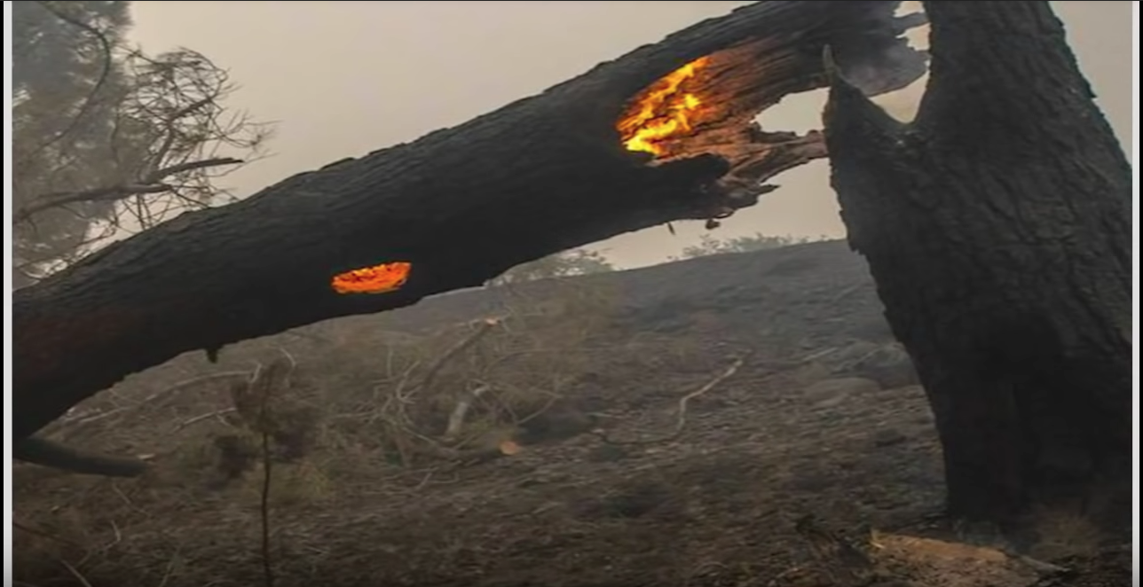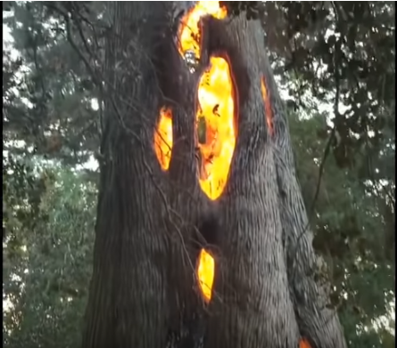 Bomen verbranden van binnenuit en staan volgens ooggetuigen binnen enkele seconden in lichterlaaie, terwijl het normaal lange tijd duurt voordat een hele boom vlam vat.