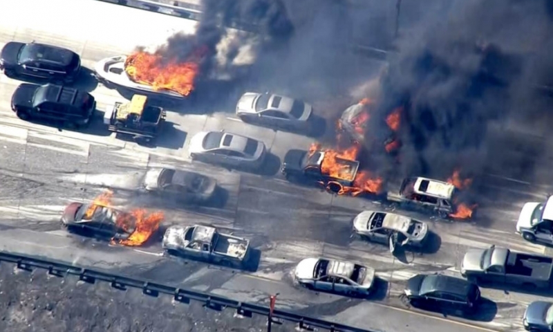 Auto’s ontvlammen op de snelweg zonder dat ze omringd zijn door vuur en waarbij er in de omgeving van de snelweg nauwelijks brandbare materialen aanwezig zijn. De beelden tonen volledig uitgebrande voertuigen waarbij de portieren nog dicht zijn. Daaruit concludeert men dat het vuur zo snel om zich heen pakte dat de passagiers geen kans meer hebben gehad om te ontsnappen.