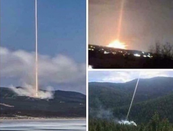 Er zijn diverse foto’s die blauwe laserstralen laten zien die uit de lucht op de gebieden schijnen waar later brand is ontstaan.