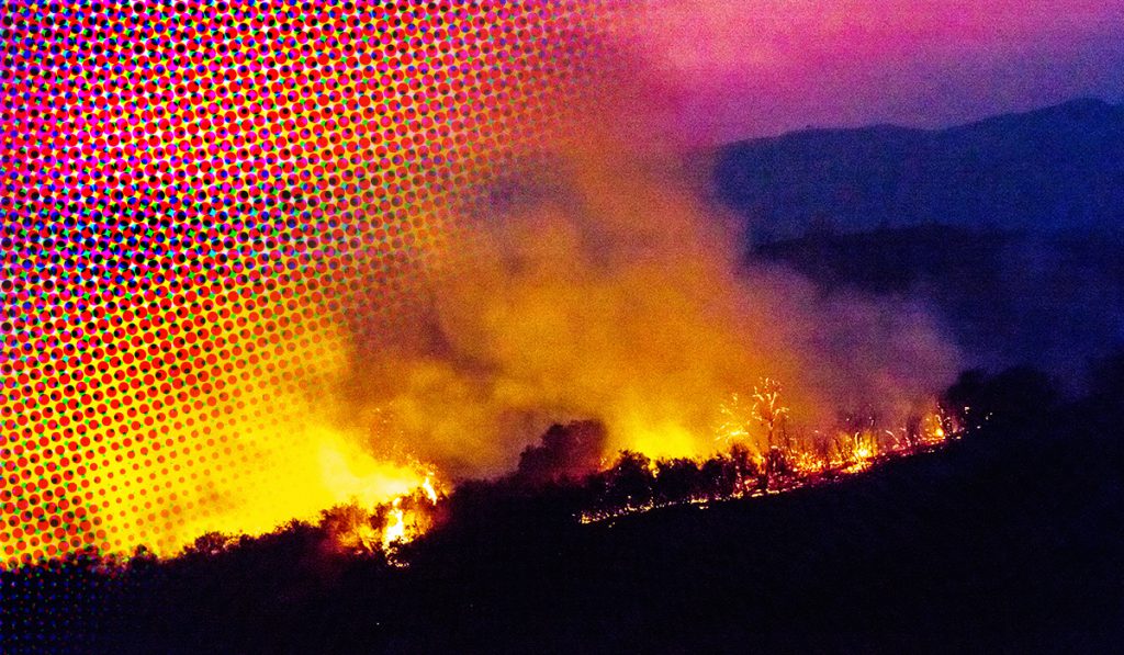 Natuurbranden met enorme rukwinden die zich keurig houden aan scheidingen van kaarsrechte landsgrenzen?