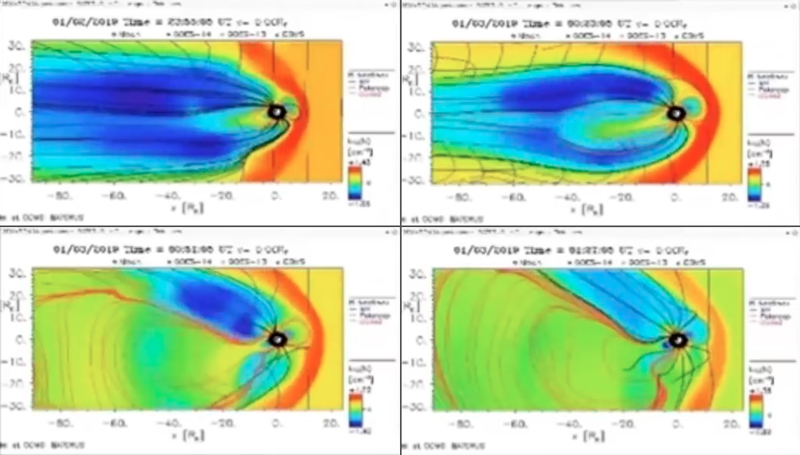 De hele elektrische magnetosfeer wordt letterlijk weggeblazen. Daardoor ontstaat een a-symmetrisch magnetische veld, waarbij de lijnen vanuit de zuidpool naar boven bewegen. Dani Arnold-McKenny ziet zelfs dat de twee polen volledig ontkoppeld worden van het elektrische magnetische veld. De oorzaak is onbekend, maar ze sluit niet uit dat deze anomalieën wellicht worden veroorzaakt door een derde object of hemellichaam.