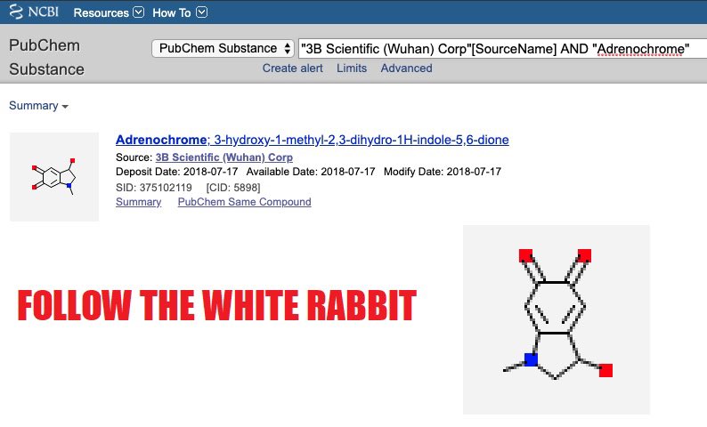 Het logo van Playboy was een wit konijn. Deze symboliek zien we ook terug bij seksslaafprogrammering en het dragen van konijnenoren en de elite seksclub SNCTM in Beverly Hills. Het witte konijn is een eufemisme voor kinderhandelaar en kannibalisme, aangezien witte konijnen soms hun eigen jong opeten. In de Q-beweging verwijst de meme “follow the white rabbit” naar deze walgelijke praktijken. Wanneer je bovendien het Adrenochrome chromosoom een kwartslag kantelt lijkt het op een wit konijn.