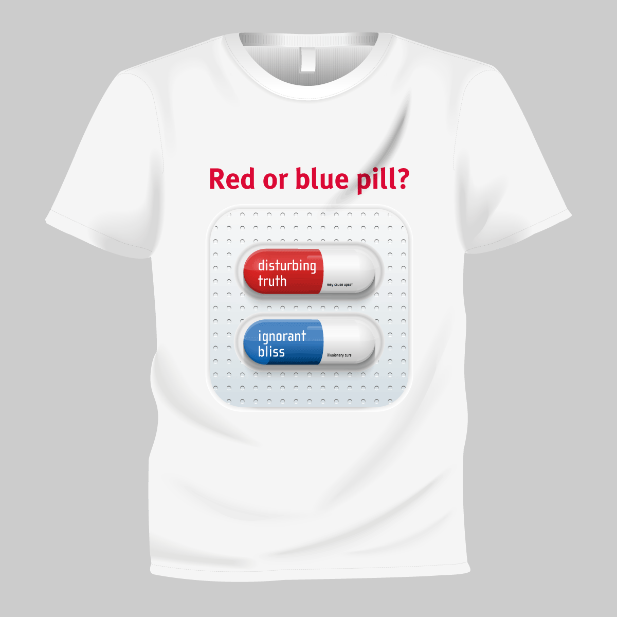 “Rode pil of blauwe pil?” is de vraag aan Neo in de film de Matrix. In de waarheidsbeweging staat de ‘rode pil slikken’ symbool voor het openstellen voor de waarheid. Hiermee beken je kleur. Jij bent ‘wakker’ en bewust. Met deze t-shirts kun je op een leuke en laagdrempelige manier een gesprek op gang brengen. “Wat betekent dat, die rode en blauwe pil?”