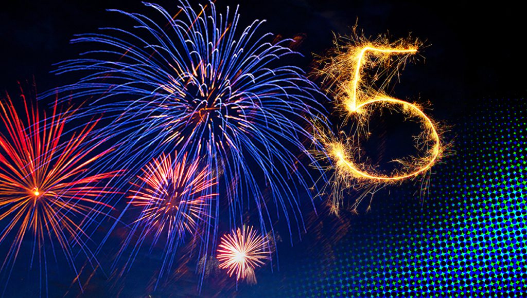 Vijf is het middelste getal in de serie enkelvoudige getallen van 1 tot en met 9. Het getal vijf streeft daarmee naar evenwicht in het universum. Met de punt naar boven streeft de vijfhoek naar het hogere, maar de twee punten op de grond duiden op ‘stevig op de aarde staan’. De vijfhoek is niet symmetrisch en geeft daardoor het gevoel onaf te zijn. Dat maakt de vijf ook onstabiel, enerzijds is er de neiging naar ‘boven’ te willen gaan, anderzijds ‘beneden’ te blijven. Daarom is vijf een wispelturig getal. Vijf streeft naar evenwicht, maar is dat niet. Pas bij de zes (2022) ontstaat de harmonie door de toevoeging van een zesde punt.