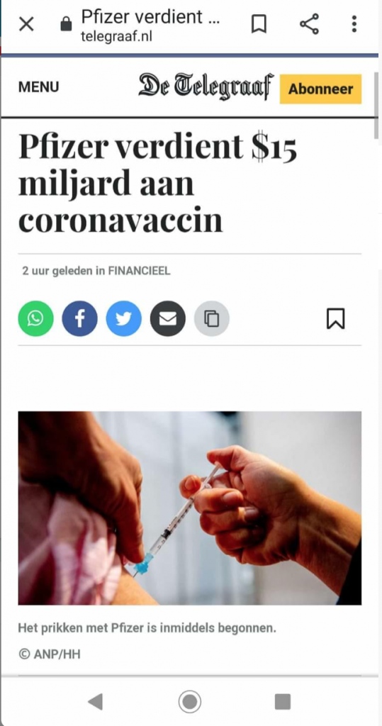 Covid-19 De farmaceutische industrie maakt miljardenomzet door de vaccinatie-agenda die zo goed als wereldwijd wordt geïmplementeerd. Dat is dezelfde industrie die achter de patenten van het in het lab gemaakte virus zit. De partijen die een rol hebben gespeeld in de registratie van het virus en de PCR-testen hebben daar enorm financieel gewin mee behaald. Zo hadden personen uit het OMT financiële belangen bij het gevoerde testbeleid. Het winstbejag van de farmaceuten verklaart waarschijnlijk ook waarom het verboden is om goedkope medicijnen zoals Ivermectine en hydroxychloroquine voor te schrijven.
