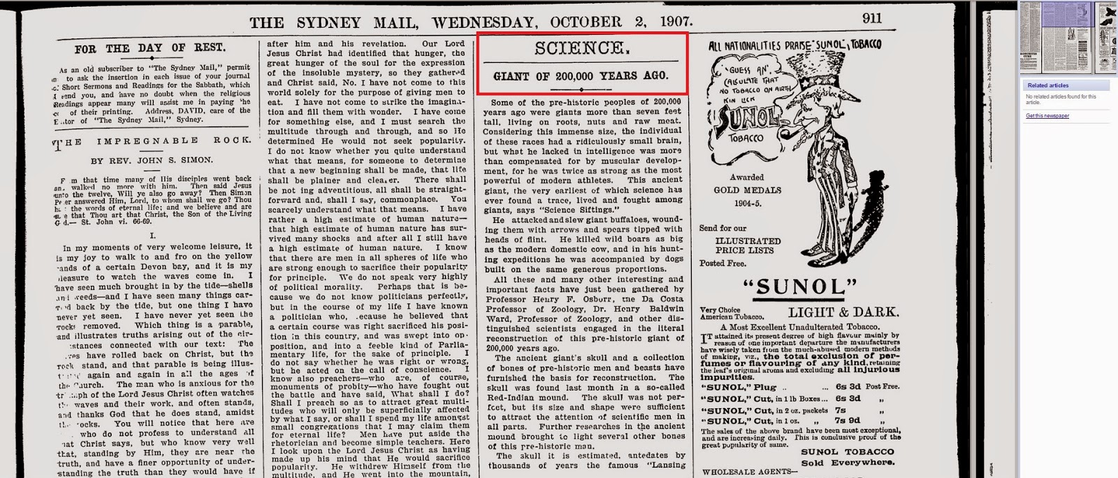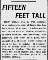 [toggle title=”Er zijn zonder twijfel wereldwijd talloze reuzenskeletten gevonden. Hieronder vele krantenberichten uit de 19e en 20e eeuw van dergelijke vondsten.” load=”hide”]