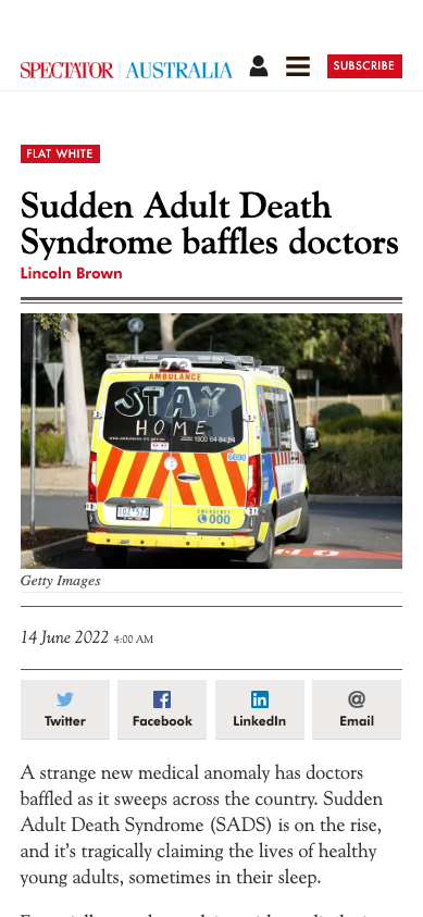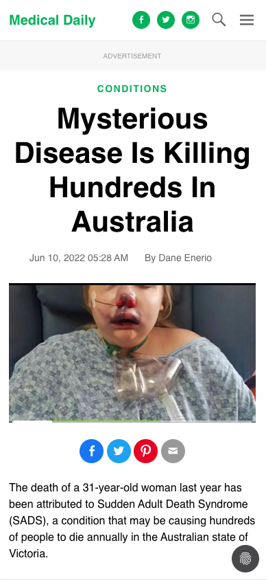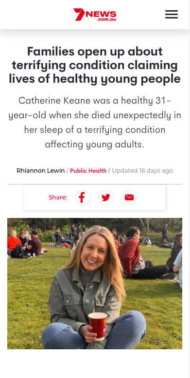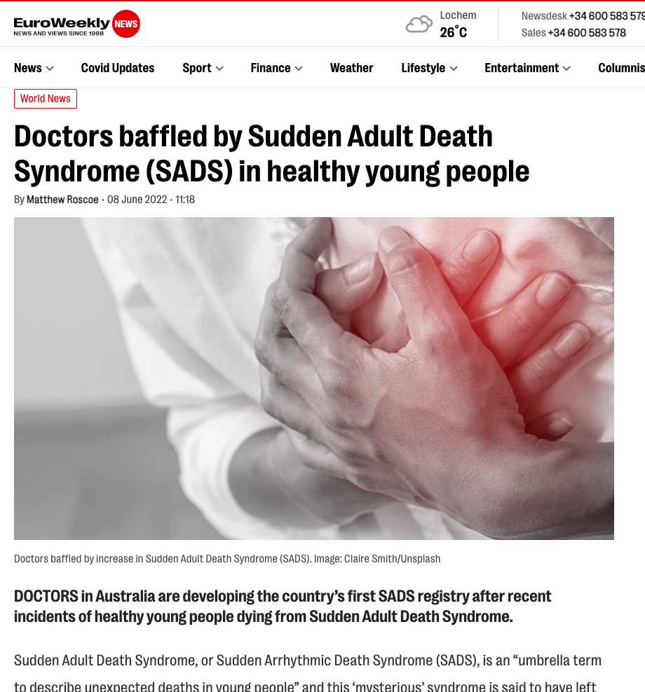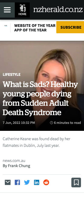 Wereldwijd verschijnen nieuwsberichten die de plotselinge overlijdens van jonge, voorheen gezonde mensen moet verklaren en toewijden aan SADS.